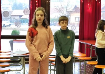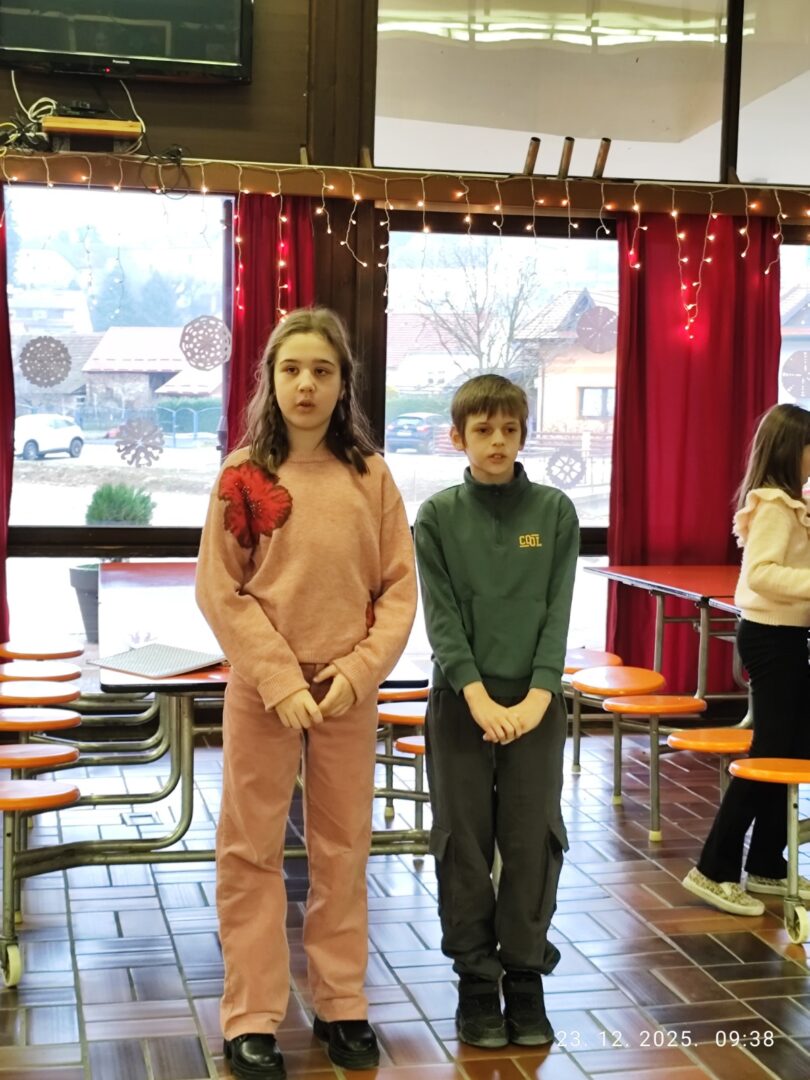 Učenici nižih razreda  te dramska skupina viših razreda pripremili su kratak program. Kroz pjesmu, recitacije i glumu unijeli su dašak svečanog ozračja.  Svojim nastupima podsjetili na važnost zajedništva, ljubavi i dobrote.
