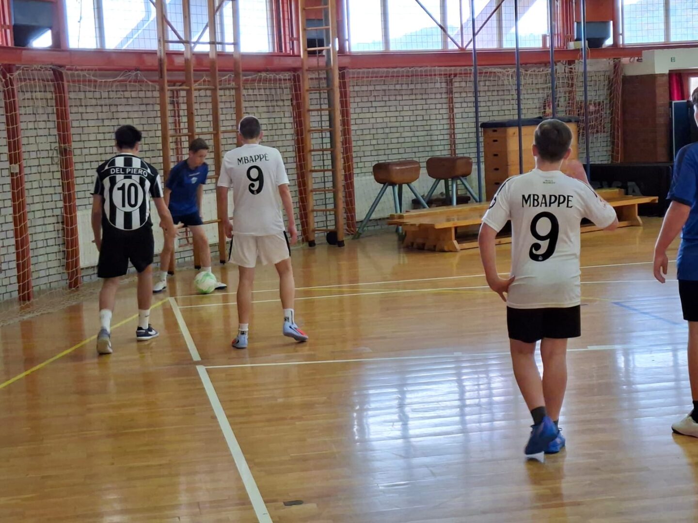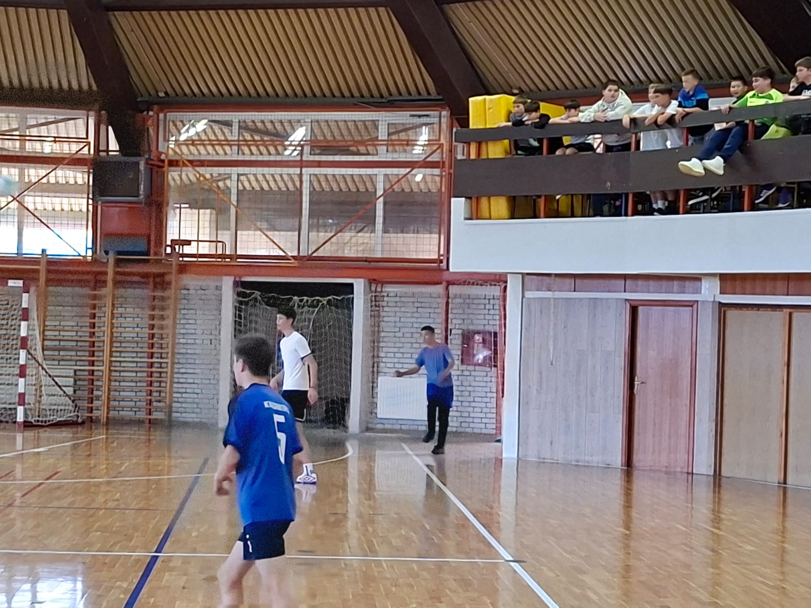 U razrednim odjelima osmih razreda (8.a i 8.b) zamijećeno je puno talentiranih pojedinaca i onih koji igraju nogomet u gradskim i županijskim nogometnim klubovima. Utakmica je trebala pokazati koji je razredni odjel bolji u nogometu. Od samog početka utakmice prilike za zgoditak su se izmjenjivale, čas na jednoj čas na drugoj strani. Povela je ekipa 8.b, pogotkom Frana Bešenića u 4. minuti, potom je izjednačila ekipa 8.a golom Marina Bajsa u 7. minuti. Na odmor se otišlo neodlučenim rezultatom. U drugom poluvremenu ponovno je povela ekipa 8.b zgoditkom Dine Balažinca u 17. minuti. I na kraju, kad su već svi u dvorani bili uvjereni da su pobjednici učenici 8.b, u posljednjoj minuti igrač 8.a Filip Ratković se s pozicije lijevog bočnog ubacio u napad i glavom postigao izvanredan zgoditak.