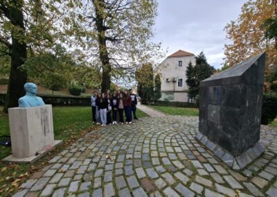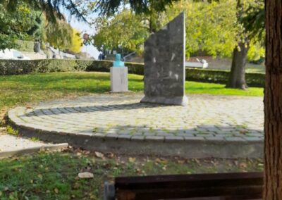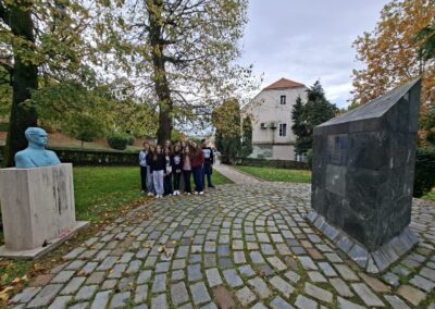 Spomenik se nalazi u povijesnom središtu Varaždinskih Toplica, a podignut je tijekom obilježavanja 150-te obljetnice uvođenja hrvatskoga jezika u službenu uporabu.