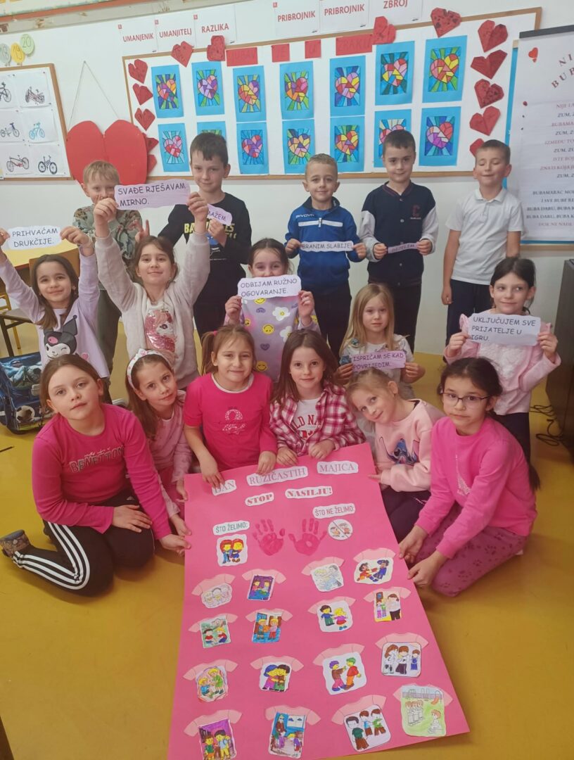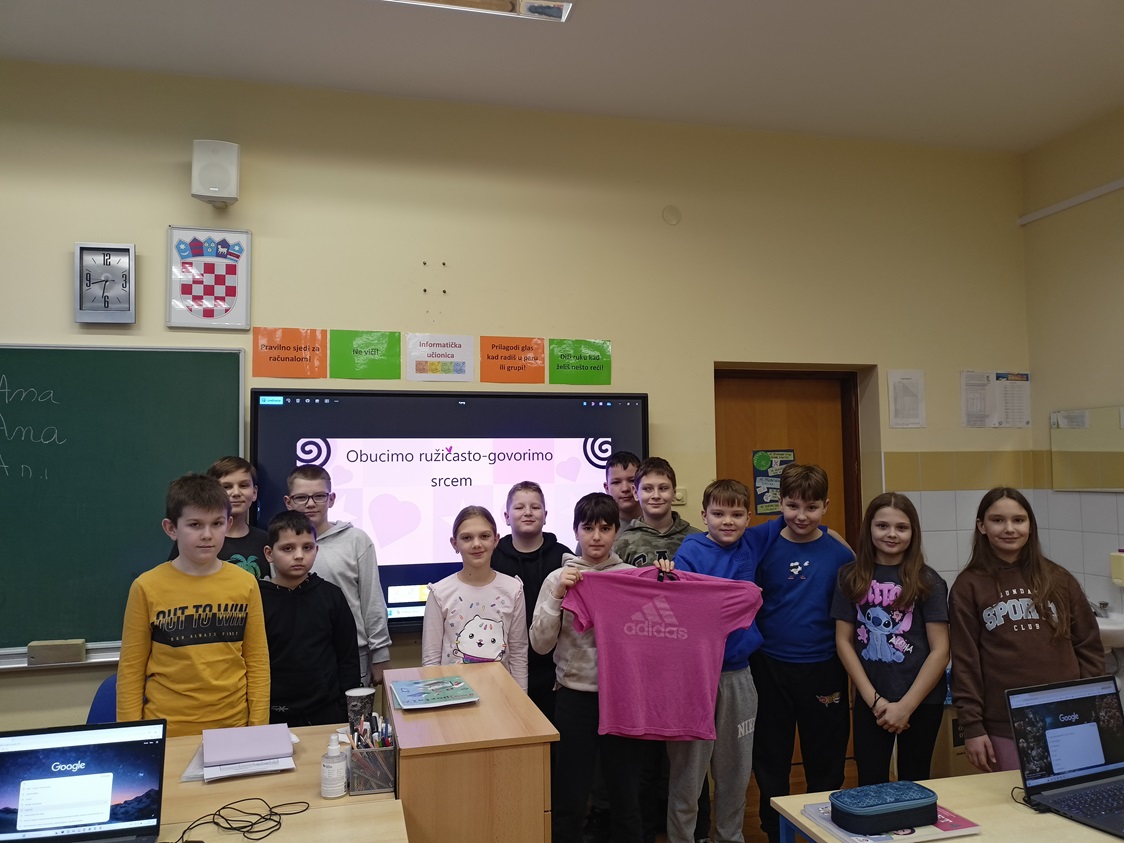 U našoj školi proveden je eTwinning projekt „Obucimo ružičasto – govorimo srcem“ povodom Dana ružičastih majica, dana borbe protiv vršnjačkog nasilja.