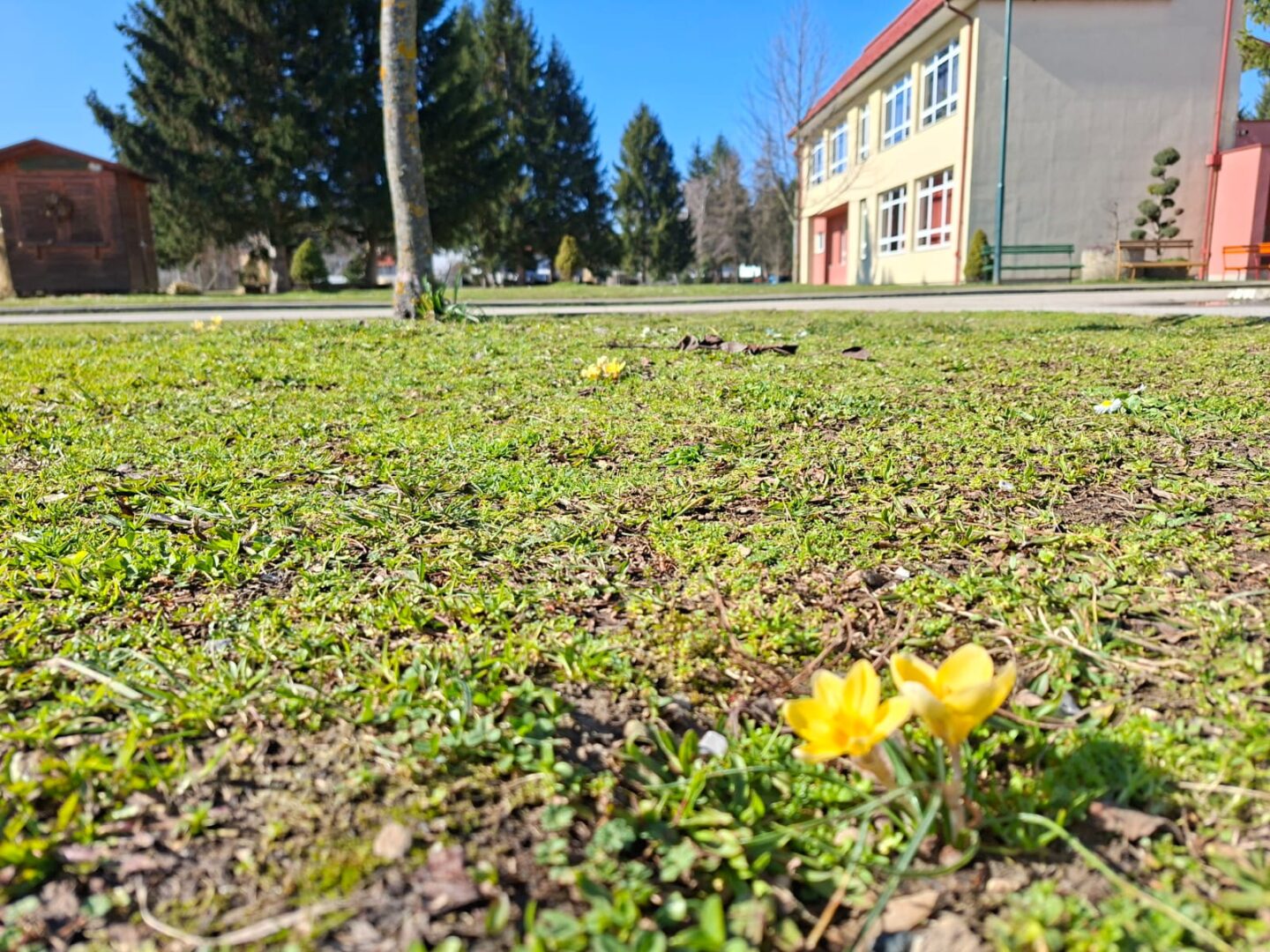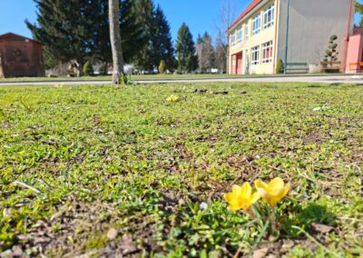 Posljednjih godina, na početku klimatološkog proljeća, uz zapadni ulaz naše škole procvjetaju zlatnožuti šafrani.