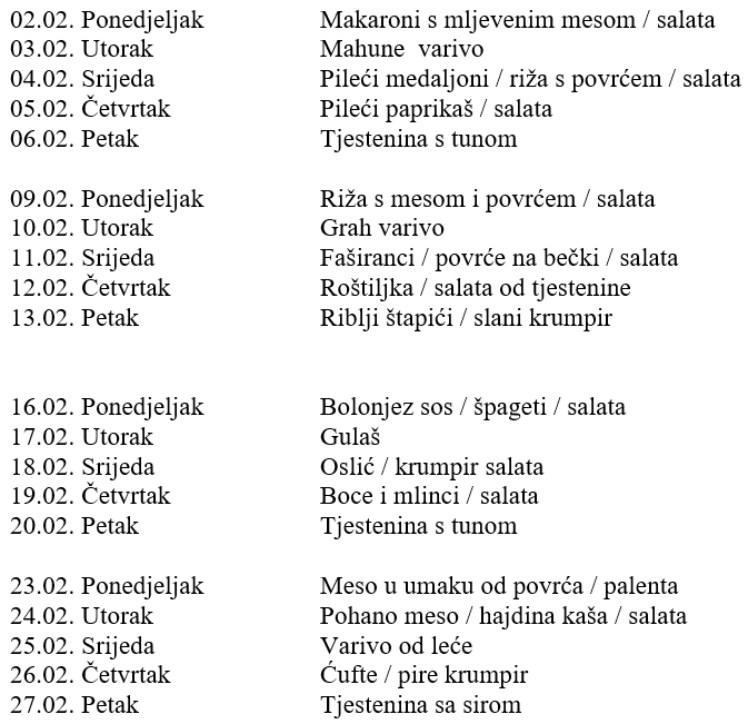 JELOVNIK ZA VELJAČU 2026.