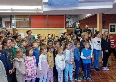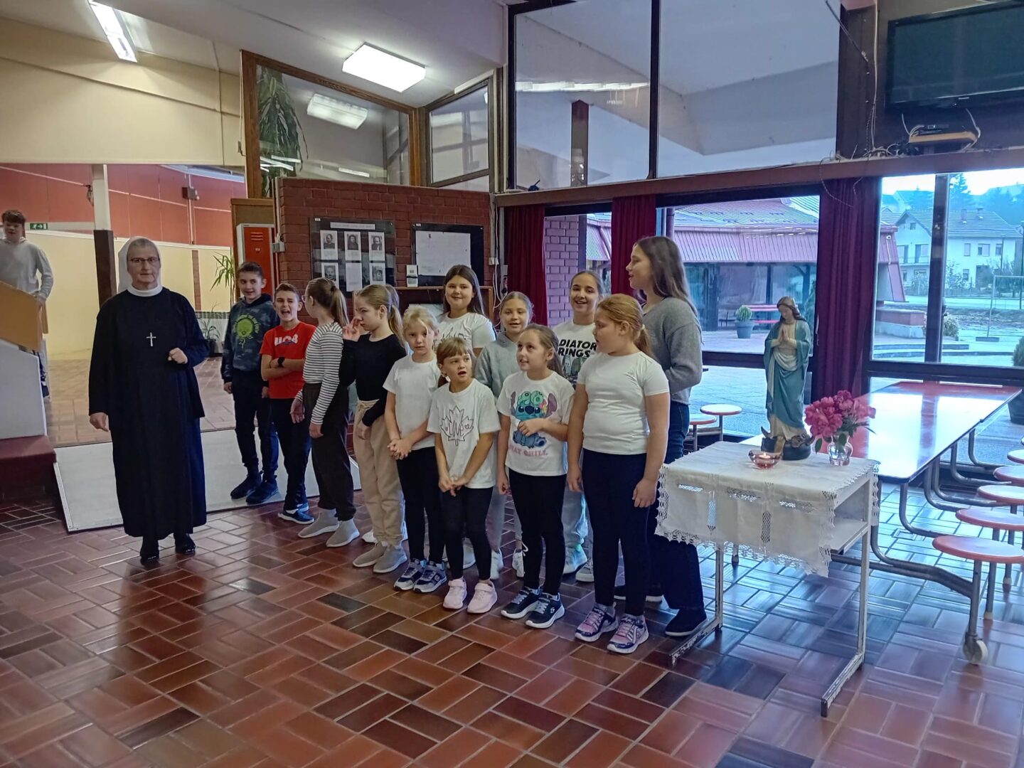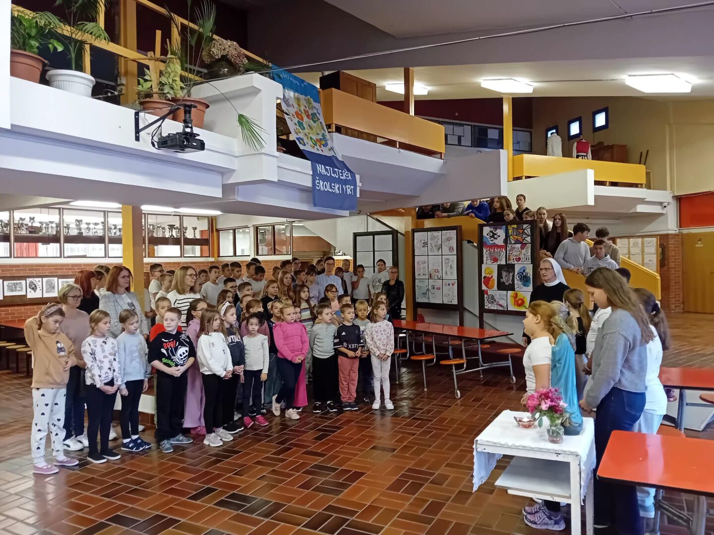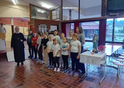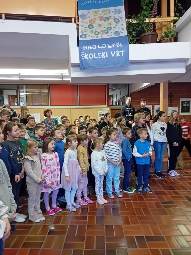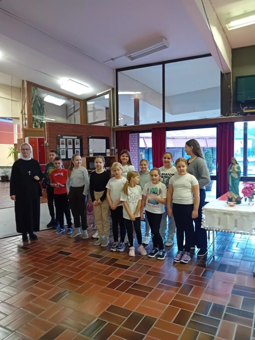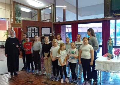 Molitvu i pjesmu predvodili su učenici koji polaze Vjeronauk, a pripremila ih je časna sestra Božena Kontent.